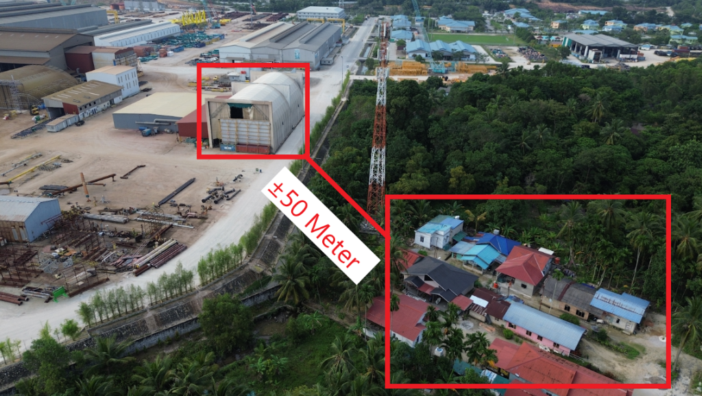 “Perusahaan diizinkan beroperasi tanpa pemisah zona aman antara industri berat dan pemukiman. Jaraknya hanya 50 meter, padahal seharusnya minimal 500 meter,” ujarnya.